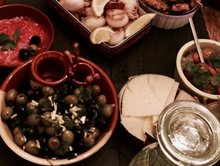 Knoblauch über die Oliven reiben, Petersilie hacken und ebenfalls zu den Oliven geben.