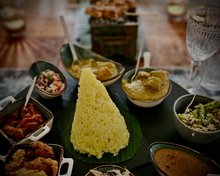 Nun gibt man den geriebenen Knoblauch, den geriebenen Ingwer, die geriebene Schalotte, das Kurkuma, die Kokosmilch und etwas Salz hinzu.