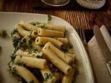 Sien die Nudeln gar, wird der klein gezupfte geräucherte Lachs vorsichtig untergehoben. Nun wird das ganz mit viel frischen schwarzem Pfeffer und wenig Salz (der Gorgonzola und der Lachs gibt schon viel Würze ab) abgeschmeckt und serviert.